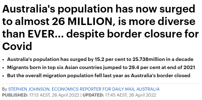 2020年3月,澳洲關閉國際邊境,澳洲人口自1916年來首次減少。不過數據顯示,2020年6月至2021年6月間,澳洲人口仍增加了4.5萬人。