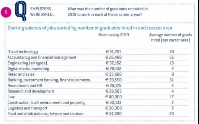 只有近3%的雇主,提供低于2萬歐元的工資;81%的雇主卻表示明年將維持或提高對畢業生的招聘要求,且絕大多數受訪雇主(88%)愿意提供培訓和實習機會。