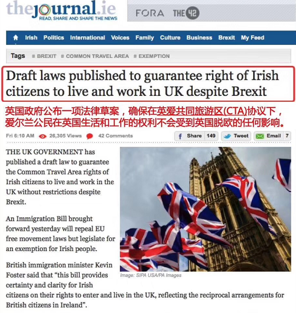 3月5日,英國發布一項移民法案(草案),廢除歐盟自由流動法,但基于英愛CTA協議,對愛爾蘭公民實行豁免。換句話說,愛爾蘭是歐盟27國中唯一不受英國脫歐影響的國家,脫歐后,愛爾蘭公民仍可自由定居英國。