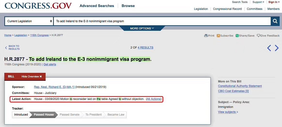 3月9日,美國眾議院通過“允許愛爾蘭加入美國E-3簽證計劃”的法案,接下來,只需參議院正式通過及總統簽字,法案即可正式實施。