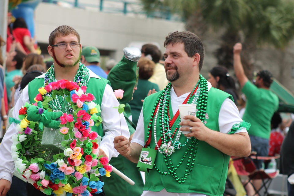 愛爾蘭國旗由綠、白、橙三色組成,綠色代表信仰天主教的愛爾蘭人,也象征愛爾蘭的綠色寶島;愛爾蘭的國花是象征幸運(yùn)的綠色三葉草,在愛爾蘭國慶節(jié)(St Patrick’s Day)當(dāng)天,舉國上下都會(huì)“綠意盎然”,愛爾蘭人會(huì)頭戴綠帽、身著綠衣開心慶祝。