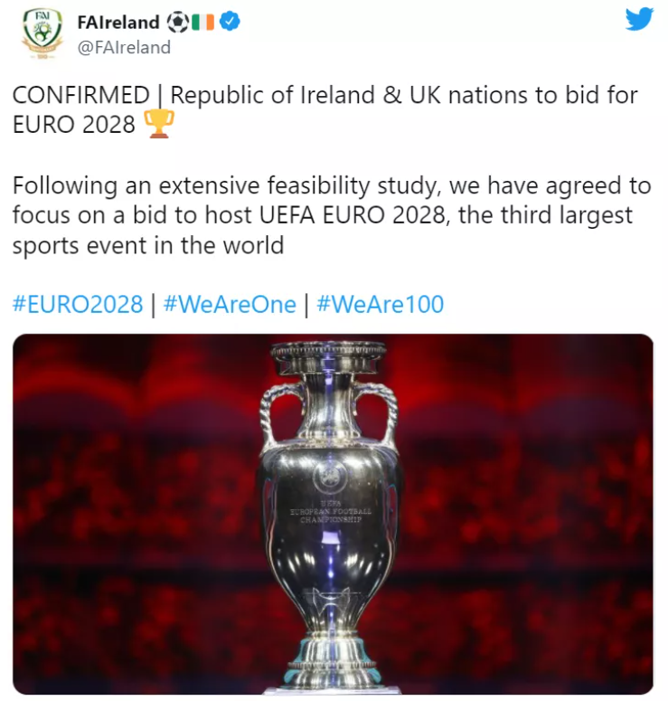 英愛共同宣布:集中火力申辦2028年歐洲杯