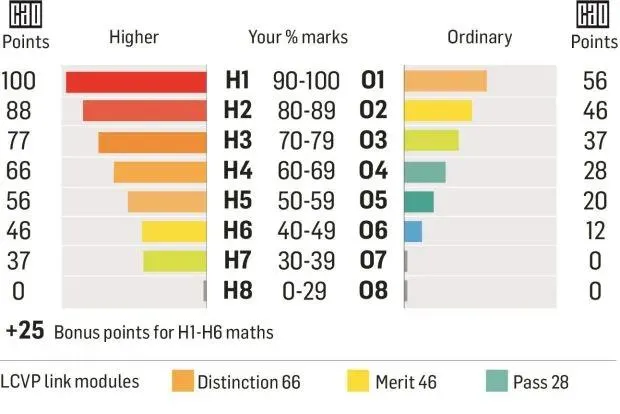 愛爾蘭高考從6月8日持續到6月28日,高考科目的構成是2+4+X,2是數學和英語兩門必選課程,另外的科目,學生可以從幾十門自選課程里面選4門或者更多課程來參加考試,如中文、音樂、藝術、體育、商業、工程、會計、設計等等,最終成績取分數最高的6門計算。