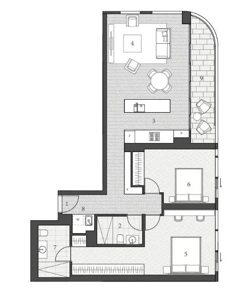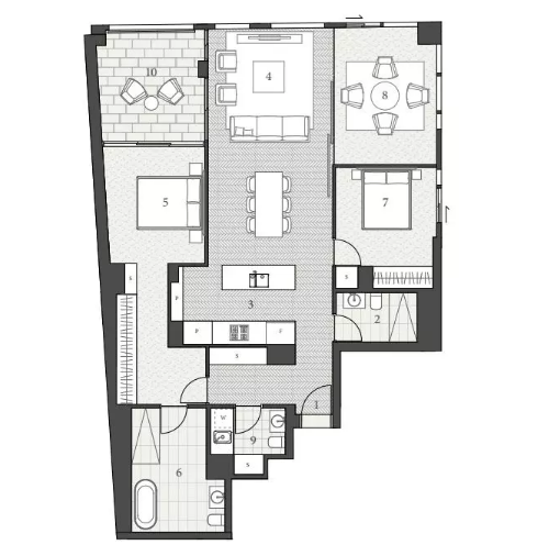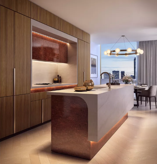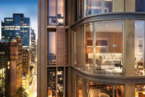 公寓的外觀由國際著名的澳大利亞建筑公司FJMT操刀設(shè)計,室內(nèi)設(shè)計由FJMT Interiors負(fù)責(zé)。采用奢華代表的家電品牌Gaggenau以及Fisher & Paykel。