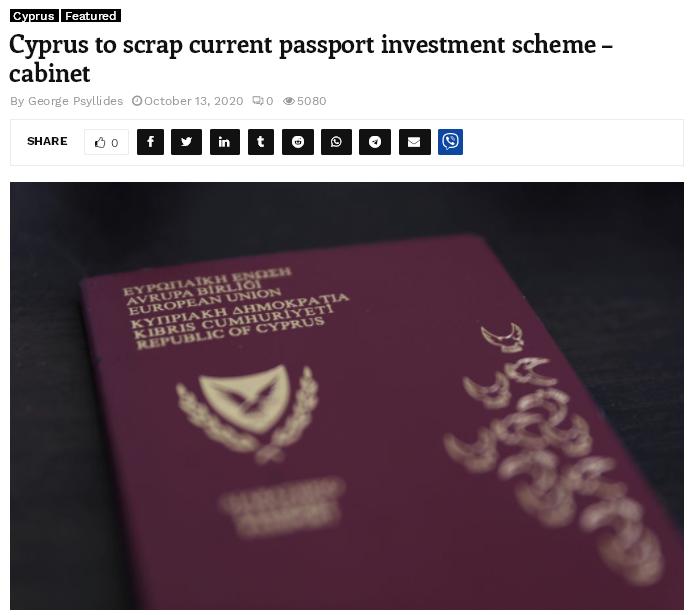 當(dāng)?shù)貢r間10月13日,據(jù)塞浦路斯郵報消息,塞浦路斯將廢除目前的護照投資項目。