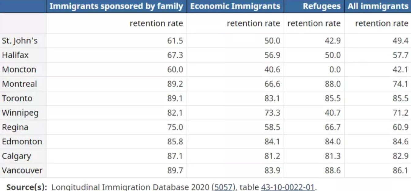 加拿大統(tǒng)計局最近發(fā)表了一項關于移民在哪些城市和省份停留時間最長的研究。