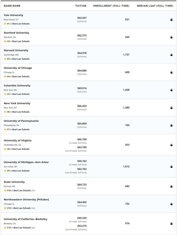 另外,最近幾年美國法學(xué)院入學(xué)率很低,有興趣的學(xué)生可以考慮。TOP10具體排名如下: