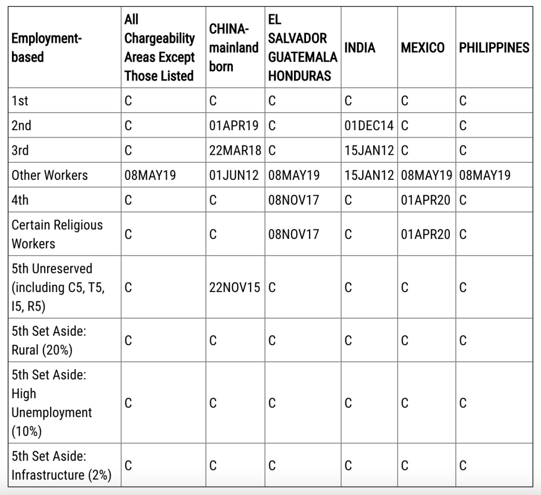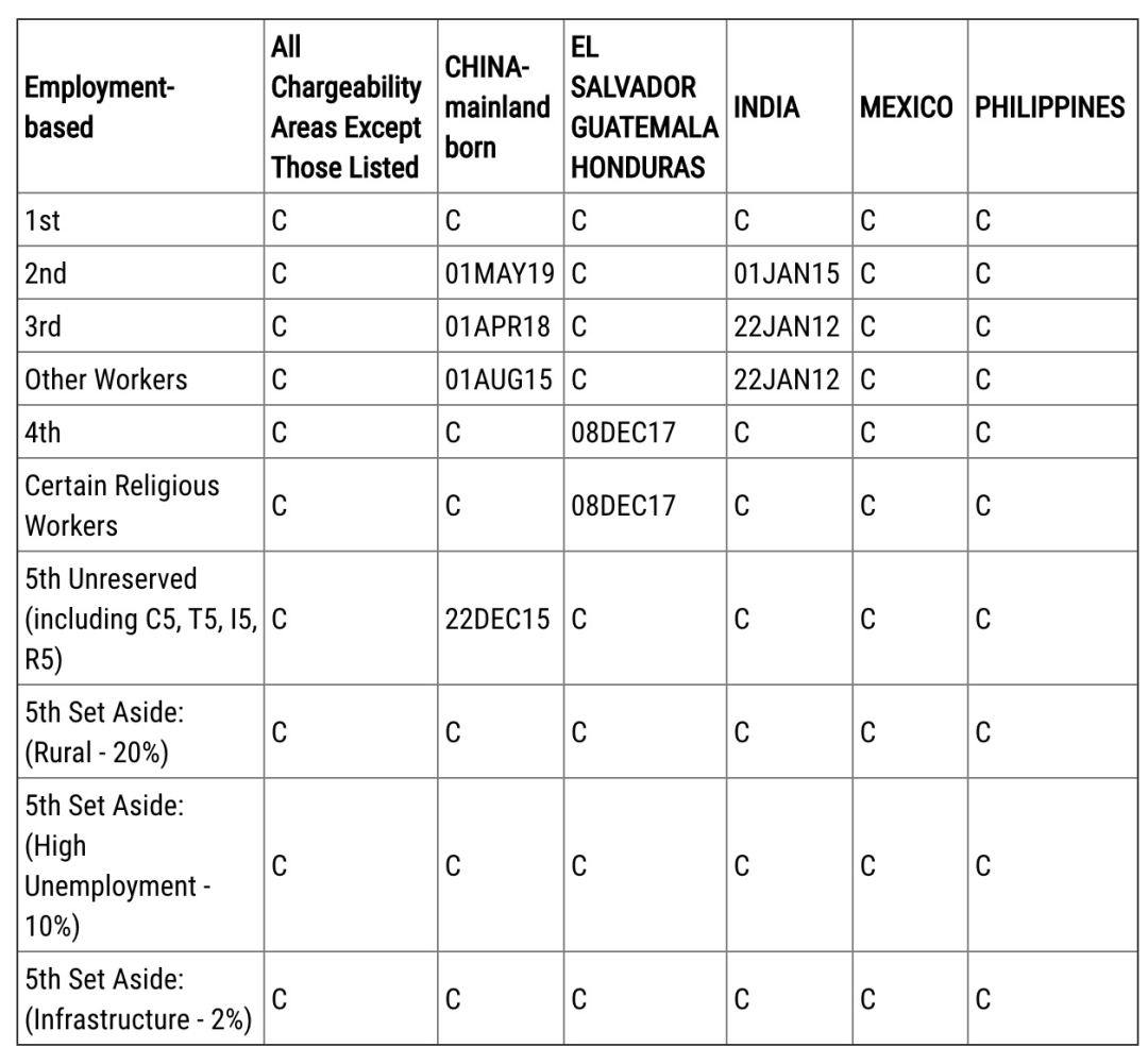 ·EB-2排期為2019年4月1日,前進(jìn)1個(gè)月;