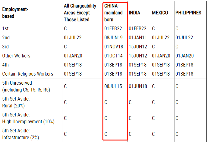 EB-5預留類別(鄉村項目、高失業率項目、基建項目):無排期