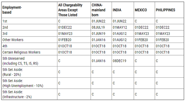 EB-3:技術(shù)類專業(yè)勞工排期為2019年6月1日,無變化;非技術(shù)勞工排期為2016年1月1日,前進了61天