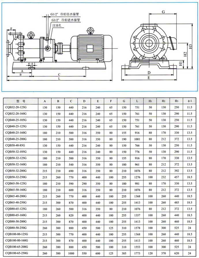 CQB-G系列高溫磁力驅(qū)動(dòng)離心泵外形和安裝尺寸: