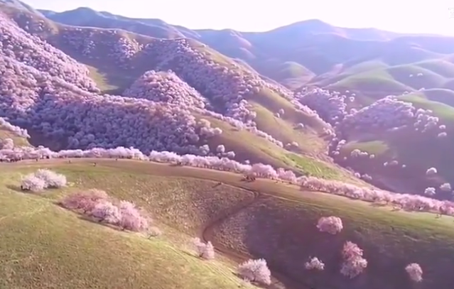 新疆杏花溝是一片中世紀遺留下來的三萬多畝野杏林。每年4月,漫山的杏花如期盛開,
